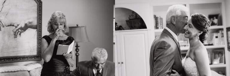 I’ve never met a couple more excited to finally be married! You could feel their joy the minute you walked into the room. It was my first time meeting either of them in person, but I immediately felt like we’d known each other a very long time! Laurie and her bridesmaids had hair and makeup done at her family home, and this might have been my favorite part of photographing their amazing wedding day. So much love, support, and happiness filled the room, setting the scene for a perfect wedding day. More than a few touching moments passed between Laurie and her family. When she revealed her classic and elegant gown to her dad, I think every single one of us had a tear or two in our eyes. (I’m not crying; you’re crying!) Just a few miles down the road, Josh and his guys were getting ready. This was a very laidback, fun crew! Watching Josh help his sons into their tuxedos and tying their neckties, you could tell that the family bond was strong and at the heart of the celebration.