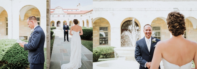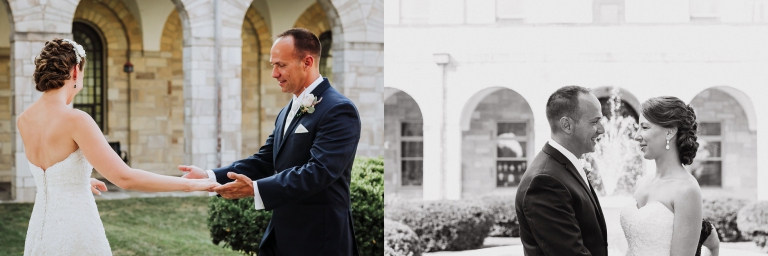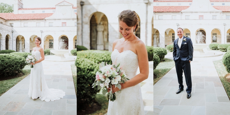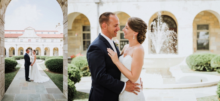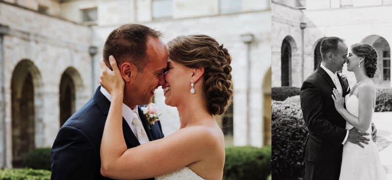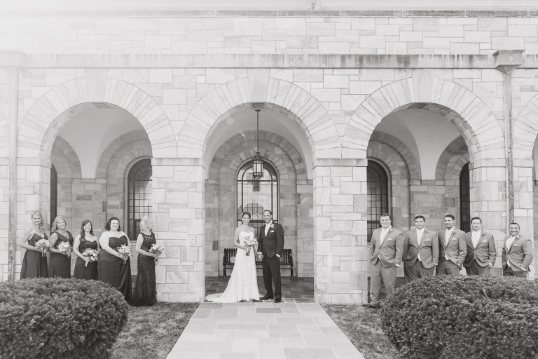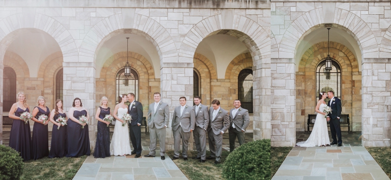 I always stress to couples, build in a lot of portrait time if it is a high priority for your wedding day. Josh and Laurie’s planning did not disappoint! We had plenty of time, and started with what could only be described as an epic first look at the Shrine of St. Anthony. Josh’s reaction to seeing his bride in her gown for the first time – indescribable! I think it would be fair to say she took his breath away. We continued with the rest of the wedding party portraits on the Shrine grounds, which offered a wide variety: gardens, classic architecture, and even a beautiful large barn!