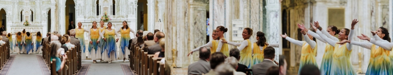 From the Shrine, we traveled to Our Lady of the Angels Parish in Catonsville for the ceremony. Like the rest of the wedding day, their ceremony had tons of personal touches. Their faith plays a large role in their lives, and they wished to have the ceremony reflect that. They even had several friends from the parish perform a wonderful celebration in dance!