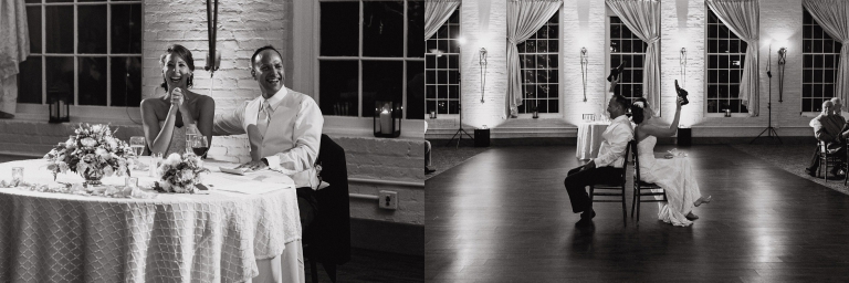 After the ceremony, it was time for the party! I was excited to finally have the opportunity to photograph a reception at the Great Room in Historic Savage Mill. As you may know, my studio was in Savage Mill for three years, and the building and grounds are close to my heart. Many of the other tenants will tell you, the Mill has a heartbeat. It lives and breathes the history of all who have walked the floors. For those three years, it was my home away from home, so to finally have a wedding onsite was a big deal! The Great Room itself is perfect for weddings. I love the blend of history and elegance. The high ceilings lend an extra sense of grandeur, but the space itself still feels cozy and intimate.